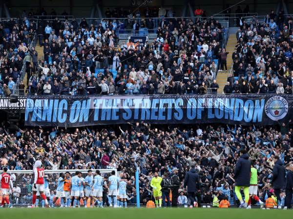 "פאניקה ברחובות צפון לונדון", עקצו אוהדי סיטי בשלט שהונף בסיום המשחק באיתיחאד.