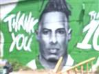 כיתוב רוסס על תמונת המחווה. מהפועל חיפה נמסר: "מעשה מחליא"