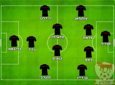 הרכב משוער: מחמוד קנדיל; עלי עותמן, עלאא אבו סלאח, אברהם פאס, דדי בן דיין; חאלד חלאיילה; חמד גנאים, פיראס מוגרבי, מוחמד גאדיר; אחמד קאסום (כריסטיאן הידאלגו), מוחמד כליבאת.