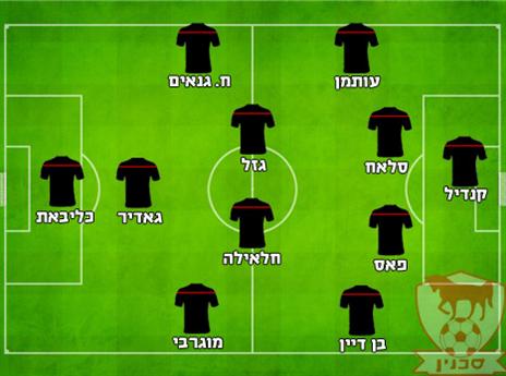 יניב קטן פרש מהאימון המסכם עקב מתיחה בשריר הירך האחורי ובנאדו יצטרך להסתדר בלעדיו. בעקבות החיסורים הרבים בקישור, גוסטבו בוקולי קיבל את האחריות בחלק האחורי של החוליה האמצעית והברזילאי הוותיק יפתח בהרכב במקומו של ידין, כשרן אבוקרט ימלא את מקומו של קטן. סארי פלאח מושעה בשל האדום שספג בבלומפילד ודקל קינן יפתח במרכז ההגנה לצד אדין צוצאליץ'.