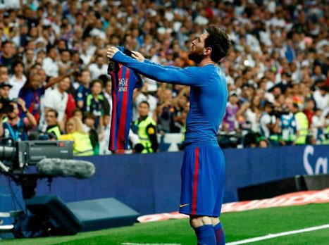 הרגע שבו מסי רץ כמוכה אמוק, מסיר את חולצת הכחול-בורדו ומציג אותה מהנהן בראשו מול אוהדי ריאל, הוציא ממנו את המפלצת. לא רק מפלצת הגולים, אלא גם גוויה מפותחת, משולש עליון מרשים ובנוי לתפארת, כלוא בתוך גופיה ארוכת שרוולים וצמודה.