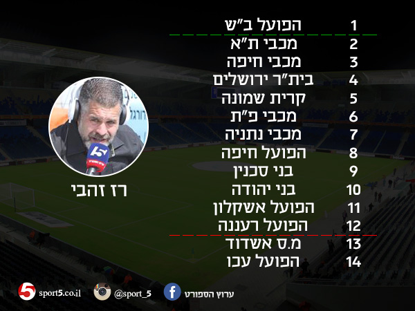 רז זהבי: הפועל ב"ש. לקבוצה מבירת הנגב יש את המאמן הטוב ביותר בכדורגל הישראלי, הבעלים הטובה ביותר, האצטדיון הכי ביתי, סגל שחקנים מחובר ואיכותי ולאחר שנתיים נפלאות אני רואה את ב"ש זוכה באליפות נוספת גם אם היא תהיה בשלב הבתים של ליגת האלופות.