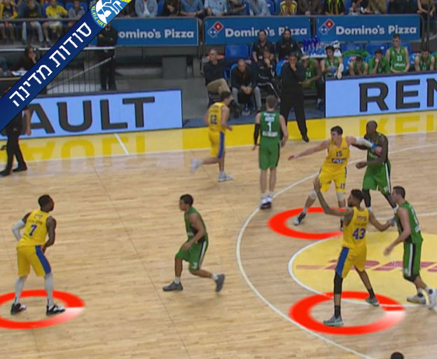 עכשיו מדגימים לאט יותר, בעזרת מהלך ממשחק הליגה מול מכבי חיפה. שימו לב לסיומו של התרגיל, שבו מסיים בולדן עם שלשה לאחר מהלך פיק אנד רול עם פייר ג'קסון