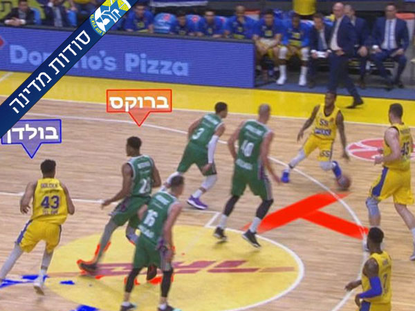 ועכשיו קצת יותר לאט. עוד דוגמא לחסימת Seal במסגרת התקפת מעבר של מכבי תל אביב מול מלאגה: גם הפעם, שימו לב לג'ונה בולדן ולברוקס, כבר מתחילת המהלך. בעוד פרחוסקי מגיע לפיק אנד רול עם ג'קסון לפני שההגנה מתארגנת, מסמן בולדן את ברוקס כמטרה – נועל אותו – ומפנה את כל הצבע לעוד חדירה מוצלחת של ג'קסון.