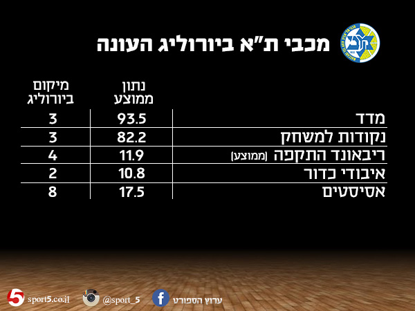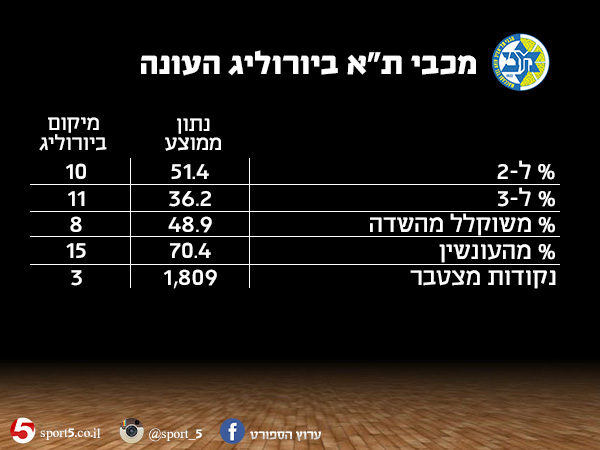 נתחיל בעובדות. על פי הנתונים היבשים הכלליים ביותר, מכבי ת"א היא קבוצת ההתקפה השלישית הטיבה באירופה, אחרי צסק"א מוסקבה וריאל מדריד. היא שלישית במדד, בנקודות למשחק ובנקודות מצטברות. ריבאונד ההתקפה ממשיך להיות אחת מנקודות האור של מכבי העונה, עם 11.9 כאלה למשחק, מה שמציב אותה במקום הרביעי באירופה. מכאן והלאה, המספרים לא ממש מחמיאים: מכבי רק שמינית באסיסטים, עשירית באחוזים ל-2, מקום 11 באחוזים לשלוש ואחת לפני אחרונה באחוזים מהקו.