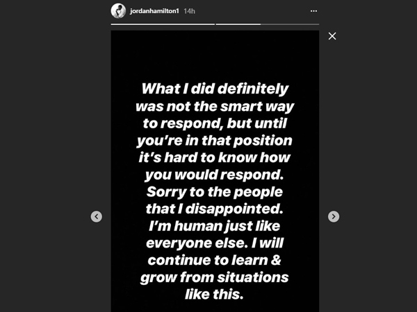 אגב המילטון, אתמול הוא התנצל בפוסט באינסטגרם על היריקה המכוערת על עמית שמחון: "יודע שמה שעשיתי לא חכם, מצטער שאכזבתי", אך טען שהיא הגיעה כתגובה לקללות לעברו. חולון הודיעה שתעמיד אותו לוועדת משמעת. שמחון עצמו, וגם אילת, הכחישו בצורה חד משמעית כי השחקן עשה שימוש בקללות שיוחסו ותקפו את הסגולים בכך שנתנו גב לשחקן.