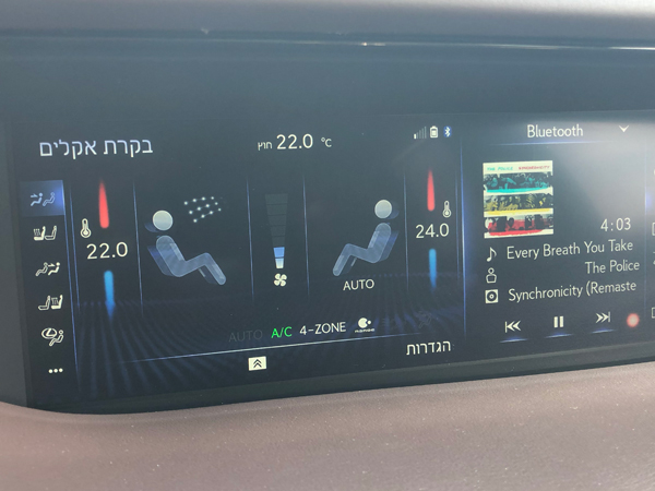 בצד המודרני של התא יש כמובן מסך ענקי במרכז הדשבורד - לא מסך מגע אגב - שנשלט על ידי משטח מגע שנמצא על הקונסולה שבין המושבים. דרך המסך נשלטות כל האפליקציות של המכונית שלחלקן יש גם לחצנים פיזיים מבורכים שחוסכים את הפשפוש בתפריטים. בסוגריים נוסיף שהיבואן הישראלי מטמיע במקביל - על מערכת נפרדת שאליה ניתן לעבור בלחיצת כפתור - אפליקציות 'ישראליות' כמו ווייז ופנגו. במקרה של ה-LS זה עובד פחות או יותר בסדר (וזה הרבה יותר מאשר ברוב המכוניות שבהן זה מקרטע) אם כי המעבר מהמערכת המקורית המשומנת והחלקה לגרסה המקומית מרגיש כמו מעבר מלקסוס לאביר תוצרת תע"ר. בכל מקרה מה שהיה קצת מפתיע לגלות זה שממשק המשתמש המקורי לא אינטואיטיבי ומחייב התרגלות . לא סוף העולם אולי, אבל בהחלט יכול היה ליישר קו עם ההתפתחויות בתחום הזה.