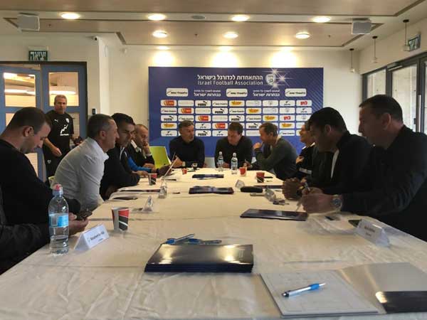 המנהל הטכני של ההתאחדות לכדורגל ווילי רוטנשטיינר, המאמן אנדי הרצוג ומאמן השוערים קלאוס לינדנברג נפגשו היום (חמישי) בצהריים בבית הנבחרות בשפיים עם מאמני ליגת העל, כדי להציג בפניהם את עבודתם בחודשים האחרונים במסגרת הנבחרת הבוגרת במהלך קמפיין ליגת האומות. הפגישה, שהחלה בארוחת צהריים משותפת, נמשכה כשעתיים וחצי במהלכה סקרו השלושה את עבודתם עם השחקנים, הציגו את תכניות העבודה שלהם לקראת קמפיין מוקדמות יורו 2020, ולסיום ניתחו יחד כמה משחקים מהמונדיאל האחרון.