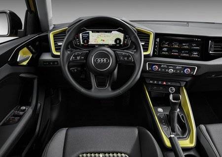 הדקורציה הפנימית של ה-A1 שואבת הרבה השראה מכלל מותגי הליבה, עם הפרדה זוויתית בין איזור הנוסע הקדמי לשטח המחיה של הנהג, כאשר בשלד הקונסולה שקוע צג מגע ראשי בגודל 9 אינץ' ומול הנהג לוח מחוונים וירטואלי בגודל 10.25 אינץ'. בסך הכול תהיינה שתי גרסאות של אאודי A1 החדשה - 'סטייל' ו-קומפורט' עם מפרטים מובחנים על ידי אבזור קוסמטי ותוספות כאלה ואחרות כמו שקע USB, בלוטות', בקרת אקלים דיגיטלית ותאימות לאפל ואנדרויד. ב-A1 גם מפרט בטיחות אקטיבי כולל בלימה אוטנומית ועוד התרעות על סטיה מנתיב וכדומה.