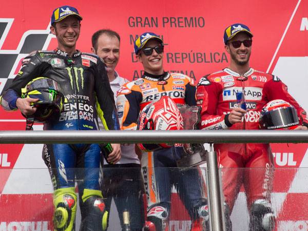 ויניאלס סיים את המרוץ בהקפה האחרונה כשמורבדלי מבלגן לגמרי פנייה ונוגח את חלקו האחורי של ויניאלס. שני אופנועי ימאהה על האספלט. מרקז מזנק היישר אל "ההולשוט", יוצא מהפנייה הראשונה כשהוא מוביל על דוביציוזו ופותח פער של שנייה כבר בהקפה הראשונה. מרקז הביא איתו שתי כרטיסיות מהבית. על הראשונה רשום 1:39 דקות להקפה ועל השנייה רשום 1:40 דקות. הוא מנקב אותן באדיקות הקפה אחרי הקפה עד לדגל השחמט וחוגג את קו הסיום בפער של מעל 9 שניות, כשבשיאו הפער עמד על 12.4 שניות. מעבר לאדיקות בשמירה על קצב, מרשים היה לראות את מרקז מקיף את המסלול ב-1:41 דקות בהקפה הראשונה שאליה הוא מזנק מעמידה על הגריד.