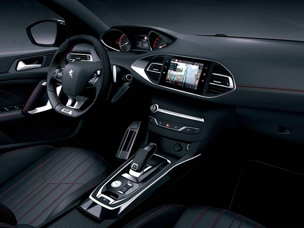 ה-308 GT מכוילת עם מתלי ספורט ייעודיים, אולם היא יותר סלחנית לנהג הממוצע בהשוואה ל-GTI. כמו כל דגמי ה-308 היא עוטפת את הנהג בסביבת הוירטואל קוקפיט עם מושבי ספורט למחצה, 8 מערכות בטיחות חכמות כולל מצלמה אחורית עם מבט "על", בקרת מדיה ראשית 9.7 אינץ' עם תמיכה במערכות הפעלה של אפל ו-אנדרויד, בקרת אקלים דיגיטלית, ועוד סממני ספורט מסורתיים כמו תפירות אדומות במושבים, חישוקי 18 אינץ', חבילת כרום, תאורת LED מלאה ועוד.