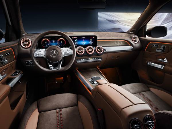 תא הנוסעים מפואר, מרווח (בסיס גלגלים 2.83 מ') וכולל את מערכת ה-MBUX הקולית לתפעול חלק ממערכות הפנים. הדשבורד לא כולל המון מתגים ובמרכז המפלס העליון צג ראשי רוחבי ברזולוציה גבוהה עם אינטגרציה מלאה של לוח המחוונים. במרצדס אגב מבטיחים שלמרות הקיטון הצנוע במידותיו בהשוואה ל-GLC, הוא "יכול לאכלס שני מבוגרים בגודל ממוצע גם בשורה השלישית". תהיה גם גרסת 5 מושבים רגילה.