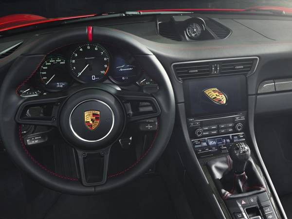 שימוש ברכיבים כמו קרבון (סיבי פחמן) וכן וויתור על כמה צעצועים עמדו לפני מהנדסי המכונית והמעצבים. כך לדוגמא קיפול התקרה הוא ידני עם מנואלה במקום אלקטרוני וכן הוסרו פתחי מיזוג. אלה, ועוד כמה כיסוחים לטובת ביצועים הפחיתו את משקלה בכמה עשרות קילוגרמים ביחס ל-911 הרגילה. היא תאיץ ל-100 קמ"ש בסביבות 3.7 שניות ועד 315 קמ"ש.
