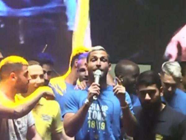 הקפטן שרן ייני החמיא לקהל: "יודעים שזה לא קל להגיע לנתניה עם הפקקים. לקחנו אליפות מחוץ לבלומפילד וזה לא דבר של מה בכך. זכינו באליפות עם שיאים שיהיה קשה לשבור ואני מקווה שאנחנו נהיה אלה שנשבור את השיאים".