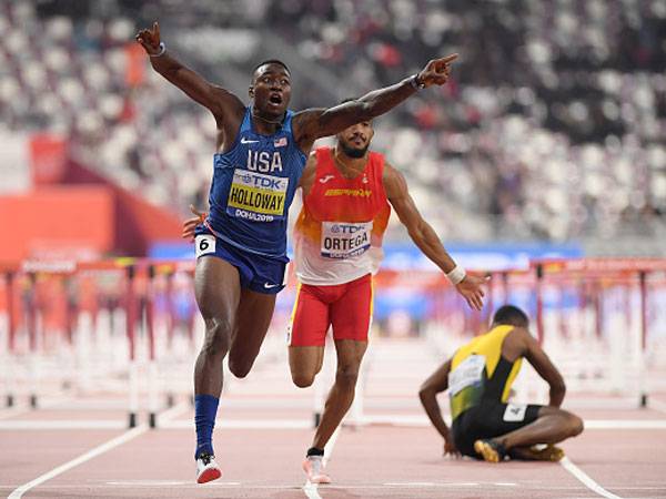 גראנט הולוואיי הלך עד הסוף. רץ המשוכות האמריקאי, אלוף המכללות, הוכתר לאלוף העולם ב-110 משוכות עם ריצה של 13 שניות ו-10 מאיות. סגן אלוף העולם מלונדון 2017, סרגיי שובנקוב, שמייצג את האתלטים החופשיים, שוב לקח את הכסף עם 13.15 שניות ואילו פסקל מרטינו לגארד הביא לצרפת את המקום השלישי על הפודיום בזכות תוצאה של 13.18 מאיות.