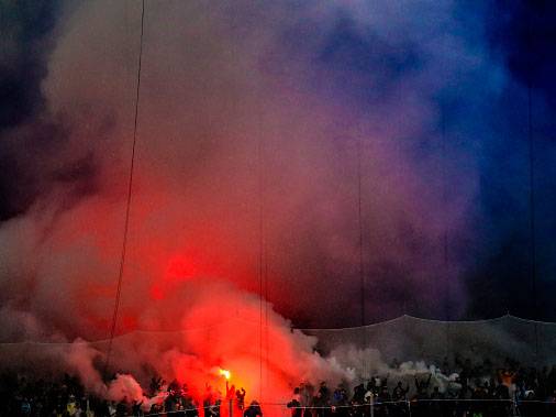 במחצית השנייה, עם עלייתן של שתי הקבוצות, עשן האבוקות כבר כיסה את כל המגרש ולא היה ניתן לראות כלום. השופט החליט להוריד את שתי הקבוצות חזרה לחדר ההלבשה. רק לאחר המתנה של כמעט 20 דקות, נפתחה המחצית השנייה.