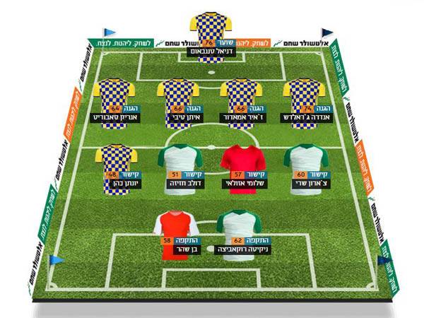 מכבי ת"א: דניאל טננבאום; מאור קנדיל, שחר פיבן, איתן טיבי (ז'איר אמאדור), אנריק סבוריט (אופיר דוידזאדה); דן גלזר, אייל גולסה, אבי ריקן (דור מיכה); יונתן כהן, עומר אצילי, איתי שכטר.