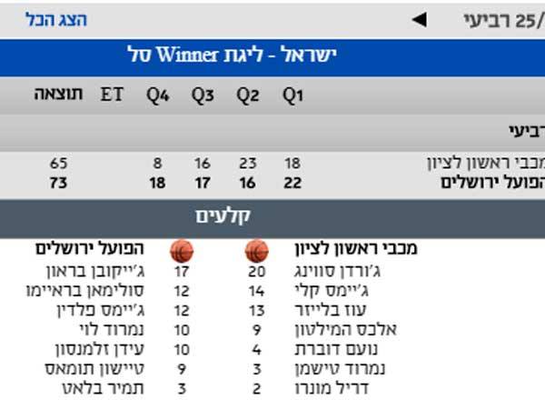 *בונוס - לוח קלעים במשחקי ליגת העל והיורוליג (זמין רק במחשבים נייחים).