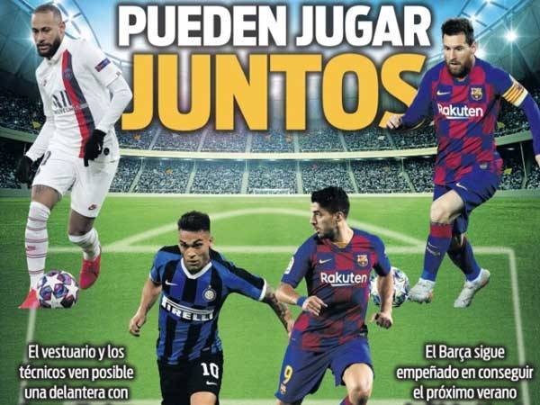 על פי הכותרת הראשית בעיתון "ספורט" המזוהה עם הקטאלונים, נכתב היום (שבת) כי "הם יכולים לשחק ביחד", כשבתמונה מופיעים גם שחקני ההתקפה בהווה - ליונל מסי ולואיס סוארס - וגם שחקנים שעל הכוונת - לאוטרו מרטינס וניימאר. על פי הדיווחים, ראשי בארסה עדיין מאד נחושים לצרף את שניהם, אחרי שהיו כבר שמועות על כך שבקבוצה ירדו מהברזילאי של פ.ס.ז'.