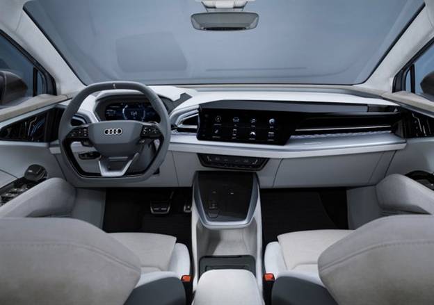 חלל הפנים מאופיין לדברי אאודי באווירה חמה ורגועה - בצבעים, בחומרים ובעיקר בנגישות ובנראות של מערכת המדיה והפקדים בעמדת הנהג. כמו בכל דגמי אאודי הוא מגייס צג 12.3 אינץ' בלוח המחוונים לטובת מידע ותקשורת, ובמרכז הקונסולה התמקדו המעצבים בהקצאת תאי אחסון רבים שבאים על חשבון ידית הילוכים (שאין בה צורך, שכן במקומה הותקן מתג אלקטרוני בודד). התכנון של סביבת העבודה מובחן על ידי מוניטור רוחבי מוטה כלפי הנהג כדי לצמצם הסחות דעת, ובשאר המפלסים תפאורה מיוחדת ושונה ממה שאנחנו מכירים כרגע מדגמי אאודי הקונבציונליים.