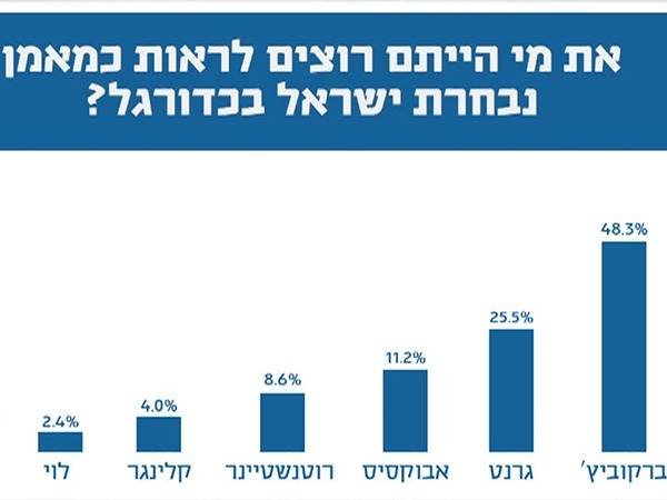 ומה לגבי האיש על הקווים של הנבחרת? לפי הסקר, גם פה ברקוביץ' שיכנע את הקהל כש-48.3% רוצים לראות אותו ממונה למאמן. אחריו הגיעו אברהם גרנט (25.5%), יוסי אבוקסיס (11.2%), ווילי רוטנשטיינר (8.6%), ניר קלינגר (4.0%) ורוני לוי עם 2.4% בלבד.