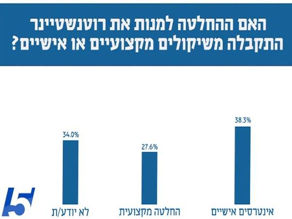 בנוסף, 38.3 אחוזים מהנשאלים סבורים כי החלטת ההתאחדות לכדורגל, על מינוי ווילי רוטנשטיינר כמאמן למשימה הכי חשובה של הנבחרת ב-20 השנים האחרונות, התקבלה מתוך אינטרסים אישיים וסגירת חשבונות. 27.6% טוענים שמדובר בהחלטה מקצועית לחלוטין, ו-34.0 פשוט לא יודעים.