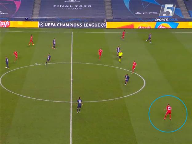 שער הניצחון של באיירן התחיל מהתקפה שבה יוזואה קימיך, המגן הימני, נכנס לקישור במהלך הנעת הכדור של הקבוצה, כמו שאפשר לראות בתמונה המצורפת. מגן ימני שנכנס לאמצע? מאחורי הקישור של היריבה?! ועוד בהנעת כדור?! אם הייתם אומרים את זה לפני כמה שנים, זה היה נשמע מופרך.
