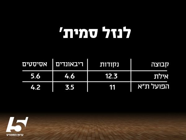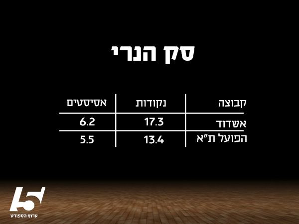 גם המספרים מספרים את הסיפור הזה בדיוק: הפועל ת"א אמנם ניצחה משחק אחד, אבל על פי כל המדדים הסטטיסטיים העיקריים, נכון לעכשיו היא הקבוצה הגרועה ביותר בליגה. היא אחרונה בליגה בנקודות למשחק (76.8), באחוזים ל-2 (47.4%) ולפני אחרונה בליגה באחוזים ל-3 (28.1%). היא מוסרת הכי מעט אסיסטים (15.8 למשחק) ומעמידה את המדד הקבוצתי הנמוך ביותר בליגה: 70.4, כשבקטגוריה הזו היא נמצאת בפער ניכר מהלפני אחרונה, בני הרצליה, עם מדד ממוצעשל 81.