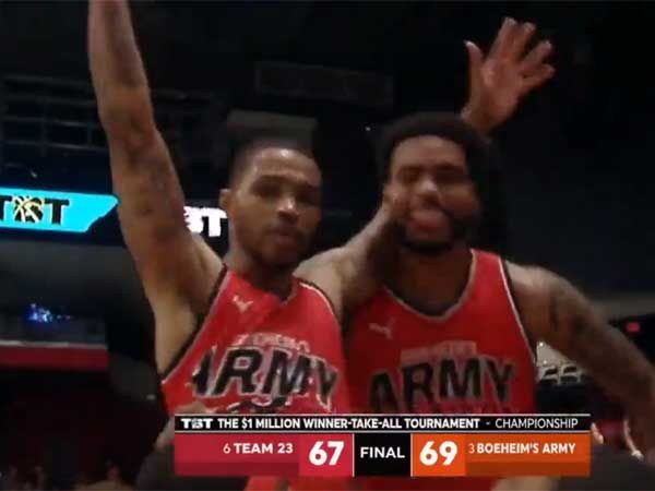 היה שווה כל רגע. טייריס רייס וקבוצתו "Boeheim's Army" גברו 67:69 על "Team 23" בגמר טורניר ה-TBT בזכות סל גדול עם הבאזר של קייפר סייקס, שחקנה של אינדיאנה פייסרס. המשמעות: אקס מכבי תל אביב יחלוק פרס של מיליון דולר עם חבריו לקבוצה.