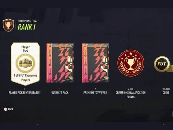 Rank 1: בחירת 3 שחקני FUT מתוך 5, חבילת אולטימייט, 2 חבילות פרימום TOTW ו-105,000 מטבעות