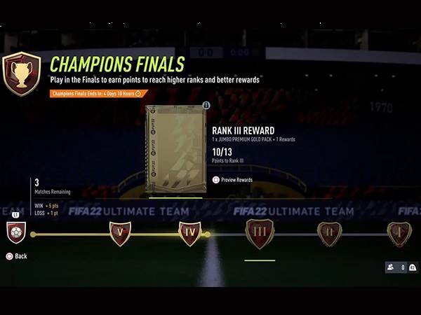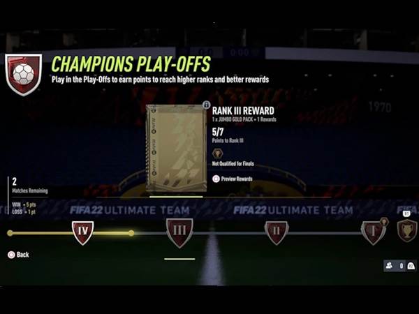 נתחיל בכך שלשחקן יש רק שבע אפשרוית להיכנס לשלבי הפלייאוף בכל עונה במשחק. המשמעות היא שאם השחקן לא מצליח להשיג חמש נצחונות במספר הזדמנויות, הוא יננעל מתחרויות ה-FUT Champs בהמשך העונה וכמובן בלי ליגת סופ"ש.
