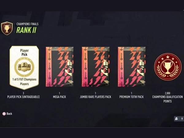 Rank 2: בחירת 3 שחקני FUT מתוך 5, חבילת מגה, חבילת ג'אמבו נדירה, חבילה פרמיום TOTW ן-60,000 מטבעות