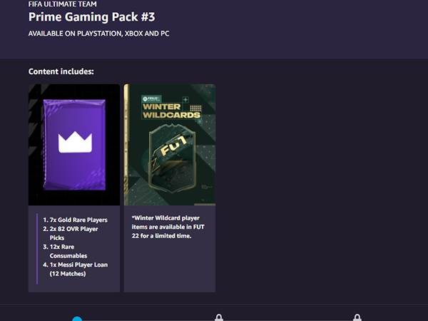 בנוסף למסי, לחברי הפריים גיימינג יהיו 7 שחקני זהב נדירים, 2 בחירות לשחק עם דירוג מעל 82, ועוד 12 אייטמים נדירים. נציין כי קלפי שחקן ה-FUT הזמינים בחבילות עשויים להשתנות בהתאם למועד פתיחת חבילת הקלפים. פריטי שחקן Wildcards של Winter זמינים ב-FUT 22 לזמן מוגבל.