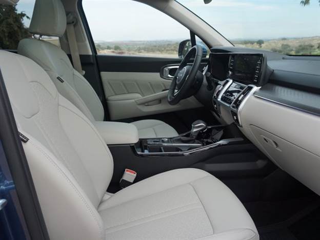 הסורנטו לא רק נראה גדול, גם חווית הנהיגה בו והשהות בפנים מעבירה תחושה של רכב עם נוכחות. הוא גבוה (1.70 מ'), רחב 1.9 מ' ובסיס הגלגלים הוא 2.81 מ' (בערך כ-10 ס"מ יותר מכל משפחתית נפוצה) עם שדה ראיה מעולה ומראות צד גדולות. בעמדת הנהג העניינים די קלים לתפעול; בכל הגרסאות מסך ראשי 10 אינץ' גדול ואינפורמטיבי במיקום מצוין, נקודת אינטרנט אלחוטי, ממשקי אפל ואנדרויד, שקעי USB, הרבה חללי אחסון ופתרונות לסלולרי וחפצים. לוח המחוונים דיגיטלי למחצה וברור אך סטנדרטי בחזותו. מערכת השמע הייתה מאכזבת.