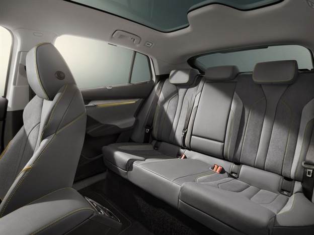 סידור ההושבה זהה לגמרי לדגם הרבוע והקלאסי של האנייק, כלומר חמישה מושבים ועם 570 ליטר זמינים מאחורי שורה שתיים על 4.63 מטר אורך. כדי להדגיש או לבדל את הקופה, סקודה יציעו רק שתי רמות גימור: Sportline ו-RS, שתיהן מתאפיינות במתלים מונמכים, פנסי Matrix Led, חצאיות צד תואמות וחישוי 19 אינץ' תקניים (ה-21 אינץ' יהיו לפי דרישה). ה-RS בולט בגימור השחור המבריק והלוגואים הייחודיים לו.