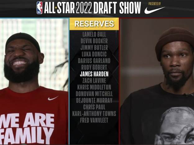 שעות ספורות לאחר שחלון הטריידים המשוגע ב-NBA נסגר, שני הסופרסטארים לברון ג'יימס וקווין דוראנט התכנסו הלילה (בין חמישי לשישי) כדי להרכיב את הסגלים למשחק האולסטאר החגיגי שייערך בעוד 10 ימים בקליבלנד, אוהיו. הסיפור הגדול והמשעשע במיוחד של הדראפט סבב סביב האולסטאר ג'יימס הארדן שרק אתמול עבר בטרייד ענק מברוקלין לפילדלפיה, אבל לפני שנגיע אליו - הנה רשימת הבחירות לפי הסדר: