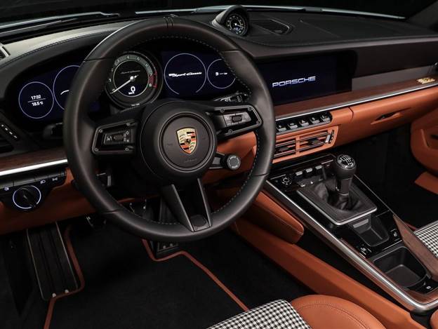 המעצבים אספו השראה מתמות ה-Fashion Grey של הפורשה 356 המיתולוגית. "ה-911 Sport Classic החדש הוא הרכב הראשון שמכיל צבע ספורט אפור מתכתי", אומר מייקל מאואר, סגן נשיא סטייל פורשה. מי שחפץ בחלופה לגימור הסטנדרטי, ה- Sport Grey Metallic, המכונית תהיה זמינה גם בשחור מלא, אגט אפור מתכתי, כחול מתכתי או עם פסים כפולים צבועים על מכסה המנוע, הגג והספוילר האחורי. בתא הנוסעים ניתן למצוא את דוגמת ה-Pepita האייקונית על הדיפונים ומרכזי המושבים, בעוד ריפוד עור דו-דוני על תרכובת חצי אנילין בשחור/קוניאק קלאסי נותנים קונרסט לגוון החיצוני.