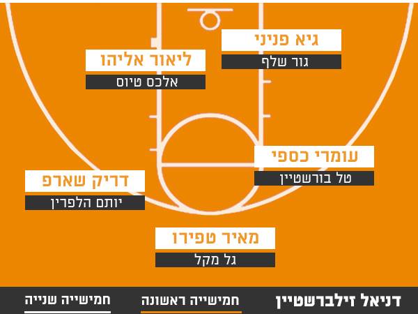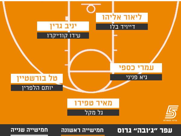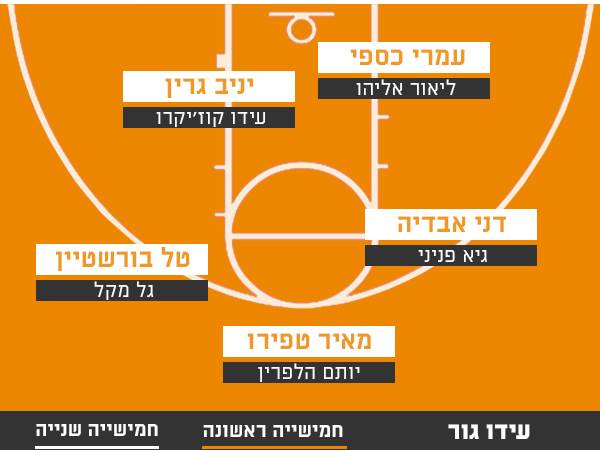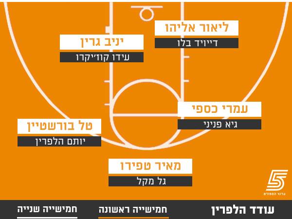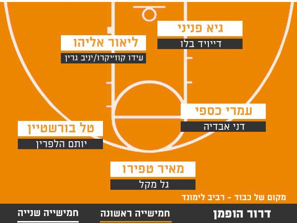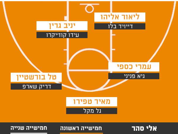 חמישייה ראשונה: מאיר טפירו, דריק שארפ, עומרי כספי, גיא פניני וליאור אליהו