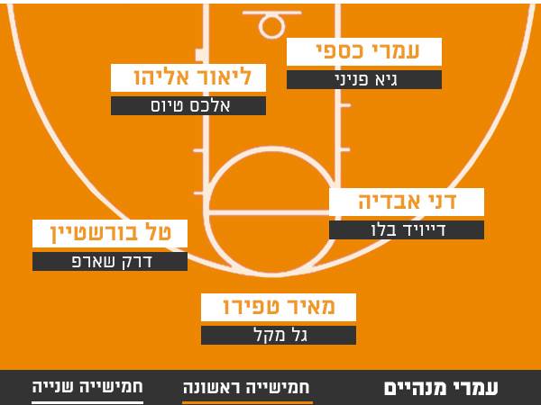 חמישייה ראשונה: מאיר טפירו, טל בורשטיין, דני אבדיה, עמרי כספי, ליאור אליהו