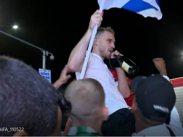 במרכז ההתרחשות, היה בוגדן פלאניץ', שהורם במהירות על ידי האוהדים ונופף בדגל ישראל. לצידו, גם עומר אצילי, דין דוד, שון גולדברג, מאוויס צ'יבוטה, מוחמד אבו פאני ונוספים הונפו על כתפי האוהדים, הדליקו אבוקות ושרו את שירי האוהדים.