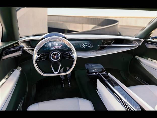 המוטיב של עידן הסילון משתקף במידה מסוימת גם בחלק הפנימי של ה-Wildcat EV. הדגש הוא בעיקר על קונסולה דיגיטלית מלאה; לוח המחוונים מורכב ממסך מעוקל גדול ובקונסולה המרכזית ישנו מסך מגע נוסף להפעלת פונקציות שונות. לא פחות מעניין הוא מיקום דוושת ההאצה וגם דוושת הבלמים מימין. עם זאת, נראה שזו יותר גימיק מאשר משהו שנראה בפועל על דגם ייצור. פרט נוסף שקשה להתעלם ממנו טמון בלוגו; ביואיק "מחלצת" את שלושת המגנים המסורתיים מהמעגל התוחם אותם, משל משחררת את התפישה המיושנת, ומכריזה שהיא רוצה לפרוץ החוצה מחדש.