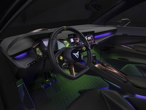 חלק מאותה תפישה של גריפיתיס באה לידי ביטוי בעיצוב הפנים. אי אפשר שלא להבחין בהגה בהשראת בקרים של קונסולות משחק, המסכים הנוספים שנפתחים ומאגפים את לוח המחוונים, וכן באה לידי ביטוי ה"דיאטה" של קופרה, זו בעצם החובה שהם נטלו על עצמם כדי לשמר מאפיינים דינמיים במינימום פשרות בצד חווית המשתמש. דוגמא אחת לכך היא שימוש בהצמדת לוחות פלסטיק קלים, מודפסים בתלת מימד כמו התרכובת המכסה חלקים מסוימים של המושבים.