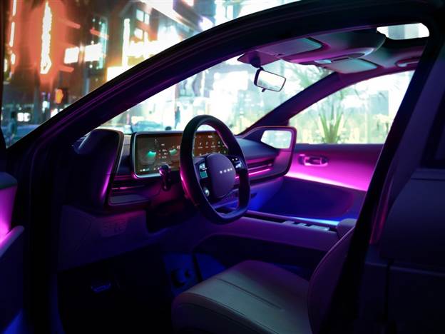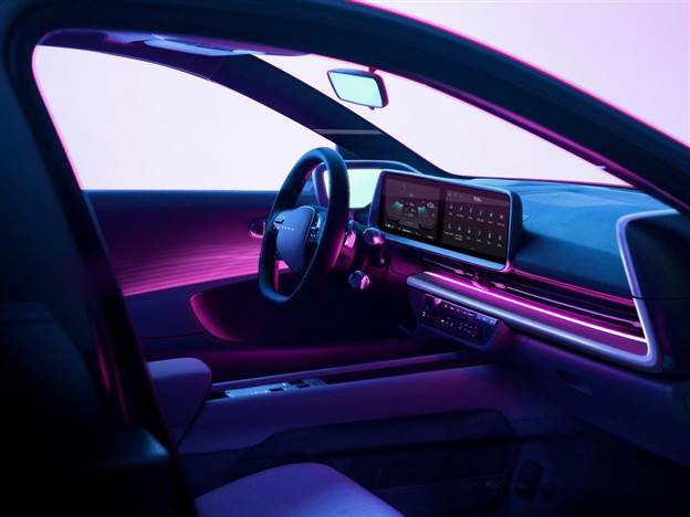 חלל הפנים משוכלל ומקורי. רוב הפקודות מבוצעות כמובן דרך המסך המרכזי, שילוב של שני צגי 12 אינץ', ובעזרת כפתורים על ההגה. למרבה הפלא, לוגו של יונדאי לא תמצאו על גלגל ההגה. במקום זאת, ל-Ioniq 6 יש ארבעה פיקסלים פרמטריים מופרדים במרווחים קטנים ביניהם. אלו מעבירים מסרים באמצעות אפקטים של אור וצבע ונותר לראות איך העסק הזה יפעל במציאות (הצבעים משתנים בהתאם למצבי הנהיגה בין השאר). מערכות הבטיחות כוללות שימוש בשבע מצלמות, בין היתר וכמובן כל העזרים המוכרים עם מרכוז נתיב, בקרות סטיה אקטיביות ומערכת חמיקה ממכשול.