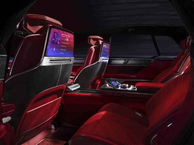 קאדילק קוראת נכון את דפוסי הרכישה של קהל רכבי הפאר החשמליים, ולכן תא הנוסעים מדמה טרקלין מרגיע ומשוכלל שמרוכז סביב חווית משתמש דיגיטלית. כדי למלא את כל הדרישות, ולגרום לגרמנים להזיע בכפות הרגליים, קאדילק שתלה מסכי LED פנימיים רבים, ביניהם בולט המסך המעוגל בגודל 55 אינץ' שחוצה את כל הקונסולה הראשית. מעל הראשים אפשר לחוות בין היתר את טכנולוגיית Smart Glass Roof, שיוצרת ארבעה אזורים נפרדים שניתן לעמעמם אותם בצורה סלקטיבית, כלומר כל אחד מהנוסעים רשאי למשוך מעין "וילון וירטואלי", המאפשר להקרין סרטוני וידאו אישיים מבלי שהנוסע שלצידך יכול בכלל להבחין בהם.