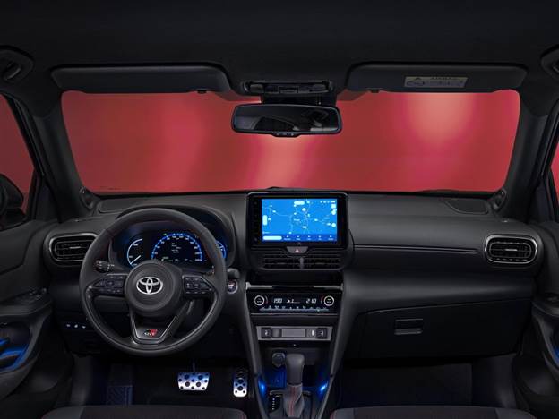 חללי הפנים מאופיינים באותו סגנון ספורטיבי, אך מפוכח ולא מוגזם, לכן דגם GR מצויד מושבים קדמיים עוטפים יותר וגימורים מבד ועור אקולוגי, אך גם עם לוגו GR התפור במשענות הראש המשולבות, אותו משכפלים טויוטה על גלגל ההגה. מה עוד באווירה הספורטיבית? דוושות האלומיניום, קצת תפירות מנוגדות וזהו בערך.