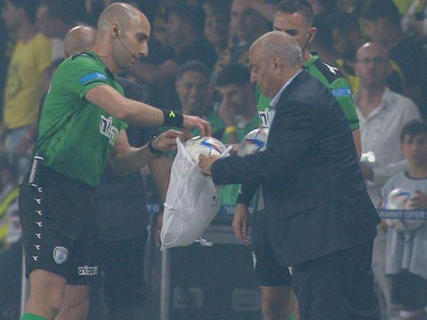 כמו באיטליה. מיד אחרי השער הראשון בגמר גביע המדינה היום (שלישי) בין בית"ר ירושלים למכבי נתניה, השופט גל לייבוביץ' הכניס את הכדור לתוך שקית והוציא אותו מהמגרש.