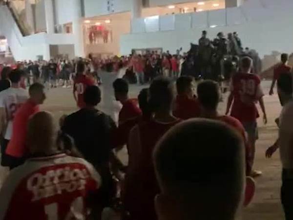 באצטדיון תועדו תורים ארוכים במיוחד בפרט ביציעים 7 ו-8, שניהם של אוהדי הפועל תל אביב. פרשים של המשטרה חוצצים בין תורי הקהל, בעוד שאוהדים טוענים שהם נמחצים ונדחסים.