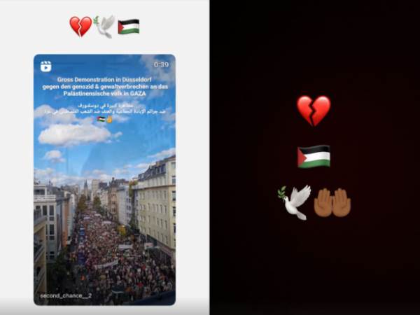 "הפגנה גדולה בדיסלדורף נגד רצח העם והפשעים האלימים נגד העם הפלסטיני בעזה", כתב בלערבי, בן לאב מרוקאי ואם גרמנייה, ששוחרר מלברקוזן בקיץ האחרון ומאז הוא בלי קבוצה. עוד נכתב בסטורי שלו: "הילדים שלנו הם החשובים ביותר, בכל מקום בעולם הזה".