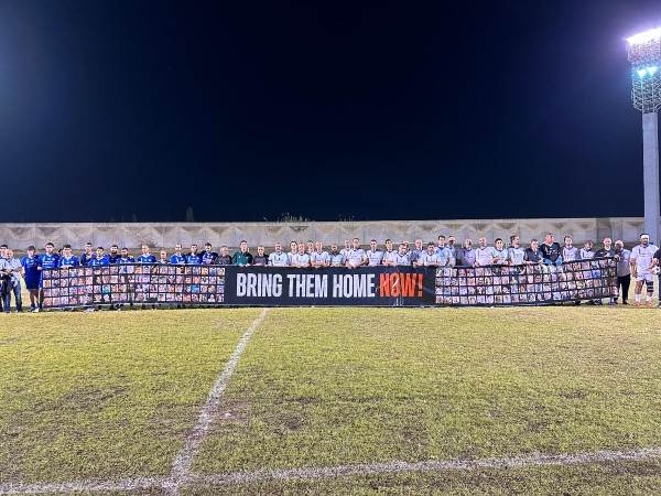 אם לא די בכך, שניים משחקני הקבוצה חטופים בשעה זו, גלי וזיו ברמן, ואחת ממטרות המפגש המיוחד היא לקרוא להשבתם והשבת יתר החטופים. בין הנוכחים באיצטדיון בת ים בו מתקיים המשחק נמצאים גם פליקס חלפון, פיני בלילי, שרון מימר, ברוך דגו , טל בן חיים ועוד.