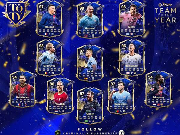 יום לאחר שפיפ"א פרסמה את קבוצת השנה שלה, EA Sports עומדת לפרסם את נבחרת השנה של EA FC 24 - המשחק שהחליף את פיפ"א המיתולוגי. בנבחרת נכללים, כצפוי, 4 שחקנים ממנצ'סטר סיטי, לצד שני שחקנים ששיחקו העונה בפריז סן ז'רמן ושניים בליברפול.